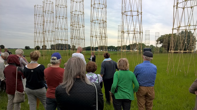 Na aankomst bij de in bamboe opgetrokken zuilen van het Parthenon sprak ik een ode aan de Maas uit. Met het openingswoord ‘De rivier van de verandering’ ging ik in op de belangrijke rol van verandering in ons leven en de kunst, en op welke manier de rivier ons daar aan kan blijven herinneren. Voor de kinderen hield kunstenaar Antoon Versteegde, de bouwer van het Parthenon, ondertussen een workshop. Na zijn uitleg maakten zij zelf, zittend in het gras hun eigen constructies van bamboestokken. De ode aan de rivier werd afgesloten door een passend lied, uitgevoerd door de minderbroeders Franciscanen en de zusters Clarissen.