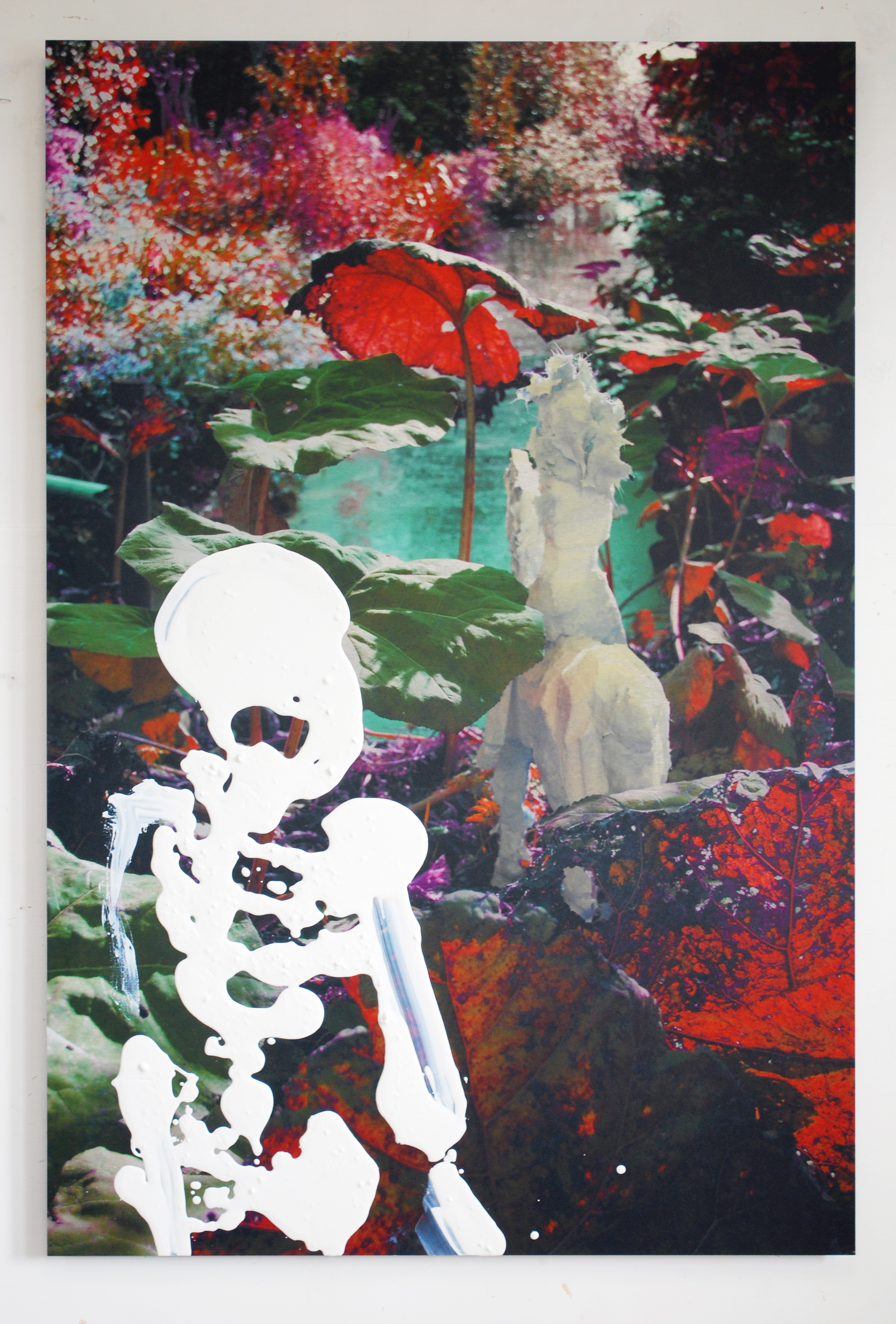 Hij domineert vasthoudend onze blikrichting. Dat is zijn taak. Wanneer wij liggen te slapen is hij het die wakker blijft. De wachter loopt door stad en landschap en speurt naar gevaar. Maar hij is ook eenzaam. Iemand die kijkt, maar wat hij ziet niet kan delen. Hij die de wacht houdt is een buitenstaander van beroep. De bewaker op dit beeld is echter nog meer. Hij is transparant en zijn witte skelet verraadt dat hij altijd al niet bij ons hoorde…of wel?